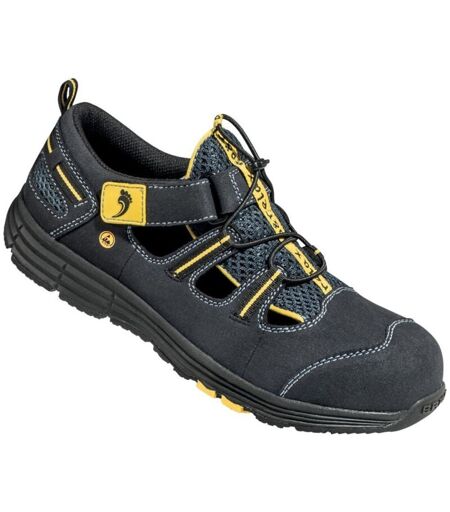 Sandale de sécurité "72112 Rene2", S1P SRC ESD - Approbation/norme : Selon EN ISO 20345 S1P SRC ESD - Sangle rembourrée avec boucle de fixation, fermeture velcro et bande élastique, réglable individuellement - Sans métal - Systme Baak go+relax pour une boucle respectueuse du pied : Capuchon de flexion et zone de flexion au niveau de la boule du pied Pied : Semelle ESD Softstep amortissement souple, antibactrienne, fongicide et respirante Semelle feu : Flexible Semelle : Semelle EVA/Nitrile avec zone de flexion et amortissement sur toute la surface, non marquante, antidrapante Matriau : Matriau en microfibre rsistant l'abrasion avec inserts textiles respirants, doublure textile rgulant le climat Scurit : embout large composite flex, protection des petits orteils, semelle non mtallique et rsistante aux perforations Poids : environ 480 g (taille 42) Largeur : 12 Couleur : bleu fonc-jaune. ...