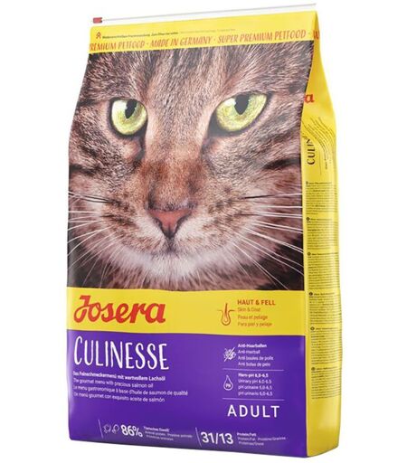 Voici les croquettes pour chat Josera Culinesse à la volaille tendre et au noble saumon, des croquettes parfaitement adaptées aux chats les plus exigeants. La fermeture par zip de l'emballage garantit à votre chat des croquettes toujours fraîches conservant jour après jour tout leur arôme. Anti boules de poils : votre chat passe le plus clair de son temps à nettoyer son pelage. Il a tendance à ingurgiter des poils qui, à long terme, forment de véritables boules de poils. Les fibres... ...
