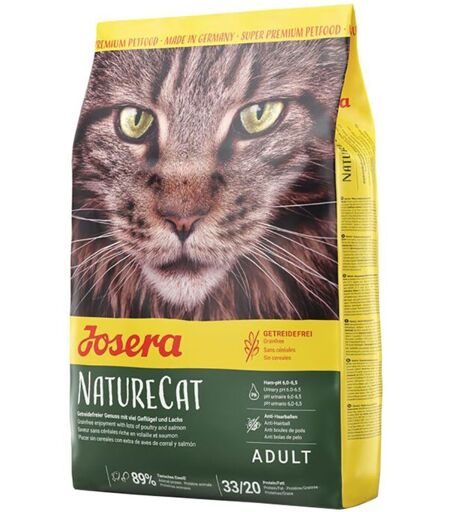 La recette des croquettes Josera NatureCat ne contient pas de céréales et convient donc parfaitement aux chats et chatons de plus de 6 mois qui souffrent de sensibilités alimentaires. Leurs teneurs élevées en volaille (29 %) et en saumon (10 %) fournissent à l'organisme des protéines essentielles. Agrémenté de fines herbes, mais aussi de légumes et de fruits, cet aliment complet apportera de la variété dans la gamelle de votre chat et fournira à votre petit compagnon un apport nutritif... ...