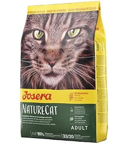 Les croquettes JOSERA NatureCat GRAIN FREE sont une nourriture super premium pour chats, sans céréales, avec 30% de volaille et 10% de saumon. Fabriquées en Allemagne, elles contiennent des ingrédients de haute qualité, sans OGM ni additifs artificiels, pour une peau saine et un poil brillant. ...