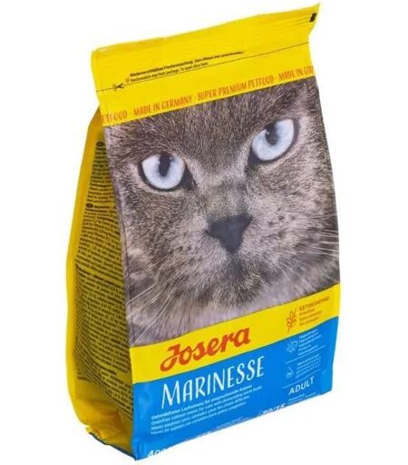 Taille:400g Contenu du coffret 400 g de nourriture sechante pour chat Josera Mariness. Ingrédients controles et de qualite superieure sans ajout de cereales contenant du gluten, de soja et de sucre ainsi que de colorants et d'aromes artificiels. Pour les chats souffrant de problemes alimentaires Formule sans cereales avec sources de proteines bien tolerees (saumon, pois et pommes de terre). Ideal pour tous les amateurs de peche avec beaucoup de saumon delicieux, cette nourriture convient egalement pour tous les fans de poissons. Hypoallergenique et facile a digerer Concu pour les nez a fourrure sensible. Fabrique en Allemagne et sans experimentation animale Fabrique par une entreprise familiale de taille moyenne en Allemagne. ...