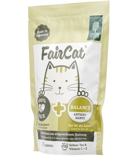 Formulée avec amour, la nourriture humide Grenn Petfood FairCat a été produite dans le respect de l'environnement et des besoins des chats. Cet aliment de qualité allemande se décline en plusieurs saveurs et est proposé ici en lot économique de 16 sachets fraîcheur de 85 g. Green Petfood FairCat séduira les propriétaires de chats qui se soucient non seulement du bien-être de leur petit félin, mais aussi de celui de l'environnement. Le processus de fabrication a une bilan carbone positif,... ...