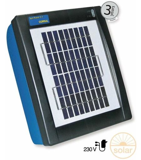 Electrificateur avec panneau solaire intégré CORRAL SUN POWER S1 pour clôtures jusqu'à 2 km pour chevaux, chiens et animaux de ferme