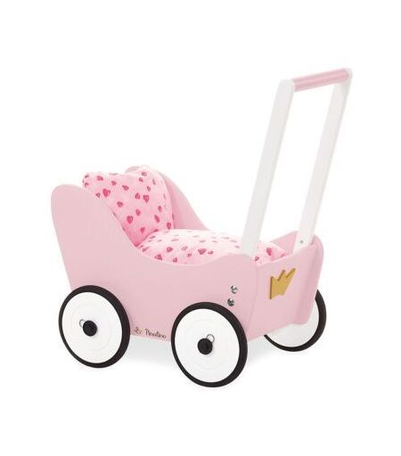Poussette pour poup?es "Lea", Pinolino:. Votre enfant pourra emmener et promener sa poup?e partout avec cette adorable petite poussette de poup?e "Lea" !. La hauteur de la poign?e est r?glable sur 3 niveaux de 52 ? 58 cm.. La poussette dispose d'un syst?me de freinage r?glable en continu.. Linge de lit vendu s?par?ment.. Dimensions:. Longueur: 49 cm. Largeur: 34 cm. Hauteur: 52 cm. Poussette en bois de h?tre et panneau de particules. Coloris rose, blanc et dor?. Pneus en caoutchouc. Convient aux enfants de 1 ? 6 ans. ...