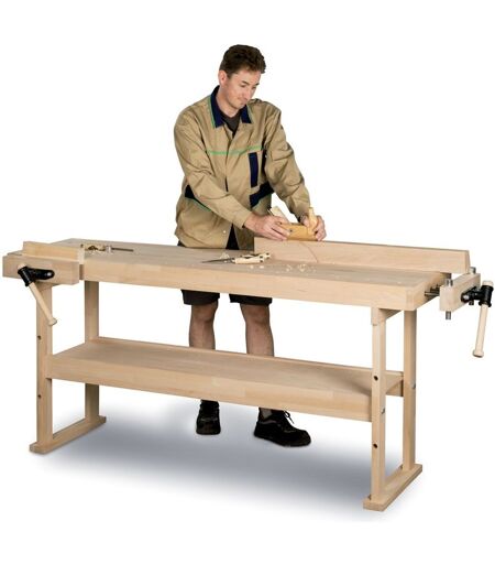 DESCRIPTION: Établi en bois pour usage semi-professionnel ou bricoleur amateur. Avantages : Plan de travail de 1340 mm Fabrication précise et soignée Trous pré-percés pour les serre-joints, adaptés aux gaucher et droiter Avec 4 crochets, 2 rangées de trous et 2 étaux à bois Convient pour : Bricoleur au charpentier Info : Livré non monté, avec notice ...