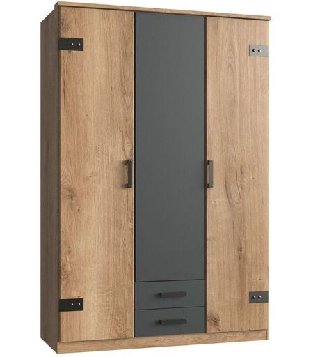Découvrez notre Armoire 3 portes décor chêne et 2 tiroirs - L135 cm. Cette armoire offre une grande capacité de stockage, les poignées sont très pratiques au quotidien. Les 2 tiroirs vous permettront également de ranger et de trier les affaires de votre choix. Le style industriel de l'armoire s'adaptera parfaitement à tous les intérieurs. Caractéristiques produit : Armoire 3 portes dont 2 décor chêne et une rechampis graphite. 2 tiroirs rechampis graphite. Matière principale: Panneaux de particules agglomérées décor chêne poutre et rechampis graphite. Dimensions produit :Longueur 135 cm x Hauteur 199 cm x Profondeur 58 cm - Poids net : 102 kg. Dimensions colis : Colis n°1 : Largeur 57,1 cm x Profondeur 154,2 cm x Hauteur 8,6 cm - Poids brut : 34 kg. Colis n° 2 : Largeur 57,1 cm x Profondeur 202 cm x Hauteur 6,8 cm - Poids brut : 41 kg. Colis n° 3 : Largeur 44,8 cm x Profondeur 194,6 cm x Hauteur 6,4 cm - Poids brut : 32 kg. Poids brut total : 107 kg. ...