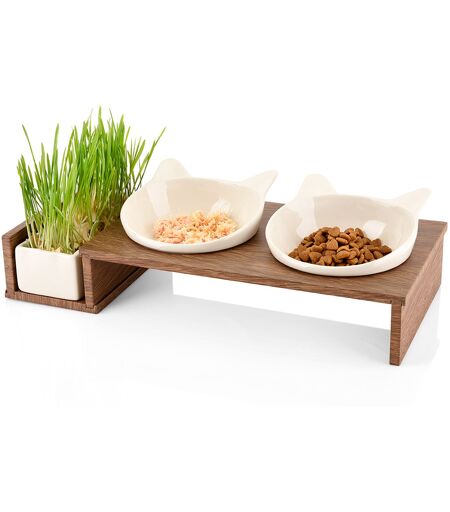 Gamelle double CanadianCat Company Cat Diner pour chat - bois : 2 x 250 mL - 15 cm de diamètre
