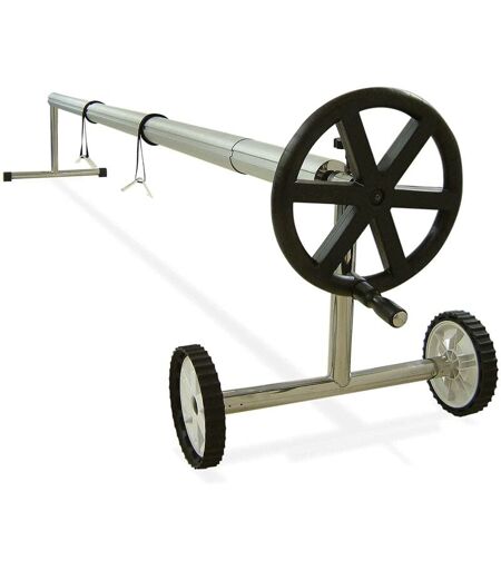 Description générale Enrouleur télescopique pour piscine enterrée, conçu pour des piscines allant jusqu'à 5 m de largeur. Il est fourni avec un kit d'attaches qui maintient la couverture par des sangles et des clips à pression, garantissant ainsi une utilisation pratique et efficace. Spécifications techniques Matériau : aluminium anodisé 15 microns Axe télescopique ajustable : de 3,90 à 5,50 m Diamètre d'enroulement : 76 et 81 mm Pieds en inox, diamètre 45 mm Frein de blocage de l'axe télescopique Coloris : volant noir Compatibilité et accessoires Compatible avec piscines rondes, carrées et ovales Livré avec kit d'attaches Installation Facile à installer, l'enrouleur est monté avec vis et écrous. Assurez-vous de suivre les instructions fournies dans le kit pour un montage optimal. Utilisation Idéal pour ranger et stocker la couverture solaire lors de la baignade. Les grandes roues permettent de le manœuvrer facilement autour de la piscine. Pour protéger votre bâche solaire enroulée, ...