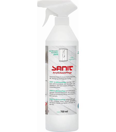 Sanit acrylique soin 3040 Détergent spécial pour l'acrylique en Cuisine Salle de bains et WC nettoie et entretient en même temps élimine les résidus de calcaire / savon scelle la surface avec effet brillant et couleurs vives empêche la repollution rapide pour baignoires et receveurs de douche en acrylique pour toutes les autres surfaces en acrylique ...
