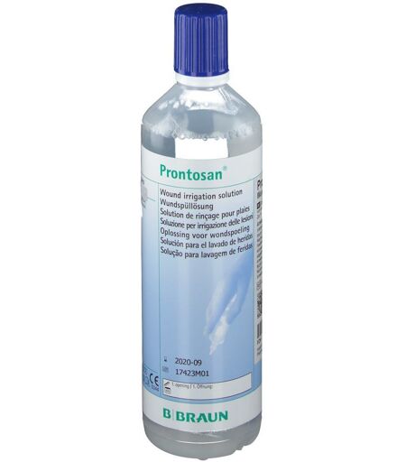Prontosan® Solution permet le nettoyage, le rinçage et l'hydratation des plaies cutanées aiguës et chroniques et pour la prévention des biofilms. Il résulte de l'association unique d'un agent antimicrobien, le polyhexanide et d'un tensio-actif, la bétaïne. Prontosan® Solution n'interfère pas avec les processus naturels de bourgeonnement et d'épithélialisation.BénéficesProntosan® Solution est indiqué pour le nettoyage et l’irrigation, ainsi que l’hydratation :Des plaies aiguës non-infectées et infectées,plaies traumatiques (par exemple, lacérations cutanées, morsures, coupures ou blessures par écrasements des tissus).plaies post-opératoires.Des plaies chroniques non-infectées et infectées, incluant: escarres de décubitus; ulcères veineux; ulcères diabétiques.Des plaies thermiques et chimiques: brûlures du 1er et 2nd degrés; brûlures chimiques.Des plaies post-irradiation.Des fistules et abcès.Des orifices d’entrée de sondes urologiques, de gastrostomie jéjunostomie ou de drainage,De la peau péristomiale.Le nettoyage et l’irrigation des plaies en cours d’opération.L’instillation combinée au traitement des plaies par pression negative,L'humidification des pansements et bandages incrustés avant leur retrait. ConditionnementFlacon de 350 ml. ...