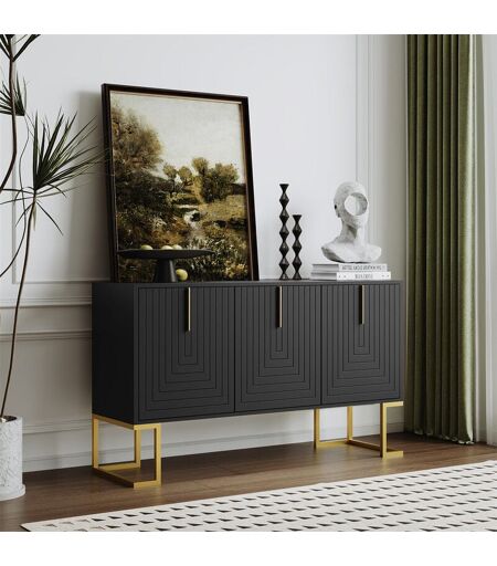 Fortuna Lai - Buffet 138x40x80.5cm, armoire avec 3 portes, étagères réglables, portes en forme de u, base en métal, noir