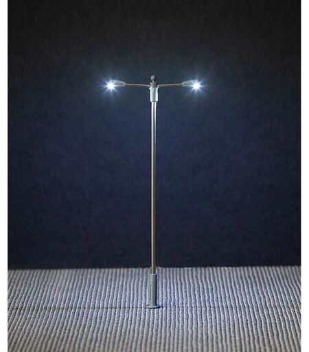 Accessoire de Modélisme HO : Éclairage public LED, lampe en prolongement à deux bras. Hauteur : 9.3 cm. Échelle : 1/87. Age minimum : 15 ans ...