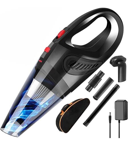 L'aspirateur à main dispose d'un système d'aspiration cyclone intégré, qui peut fournir une aspiration continue et forte. Appareil portable léger pour oussière/cheveux/confettis/miettes/sable/squames d'animaux sur tapis, tables, canapés, claviers, surfaces de travail, sièges de voiture. , etc. L'aspiration puissante est suffisamment fiable pour répondre à tous vos besoins de nettoyage quotidiens. Aspirateur portable sans fil avec 3 piles au lithium haute capacité de 2200 mAh, cet aspirateur portable sans fil rechargeable peut être complètement chargé en 2 heures avec un temps de travail allant jusqu'à 45 minutes. Répondre au besoin de nettoyage en profondeur des besoins sales de votre cuisine, du salon à la chambre. L'aspirateur de voiture sans fil est équipé d'un filtre HEPA lavable, qui peut éviter la perte d'aspiration due à l'accumulation de poussière, protéger efficacement le moteur, le retrait en une touche et peut être réutilisé. Conception à faible bruit de 65 dB, vous n'avez pas à vous soucier de déranger vos enfants ou d'effrayer vos animaux de compagnie ; et est une aide familiale idéale. Le mini aspirateur à main sans fil est doté d'une poignée légère et ergonomique qui vous permet de vous déplacer librement pendant le nettoyage, ce qui rend le nettoyage plus pratique. L'aspirateur est également doté de 3 types d'accessoires différents pour une polyvalence accrue, vous aide à nettoyer les coutures du canapé, les coins d'escalier, les crevasses de voiture, etc. Conception légère et sans fil Ce petit aspirateur à main est conçu pour une utilisation mobile. vous pouvez facilement l'utiliser dans la voiture et au bureau. le mini aspirateur est très léger, il peut donc également être transporté facilement.Facile à tenir et à ranger. 1 an de garantie sans souci. Veuillez nous contacter pour toute question. 100% garantie de votre satisfaction. ...