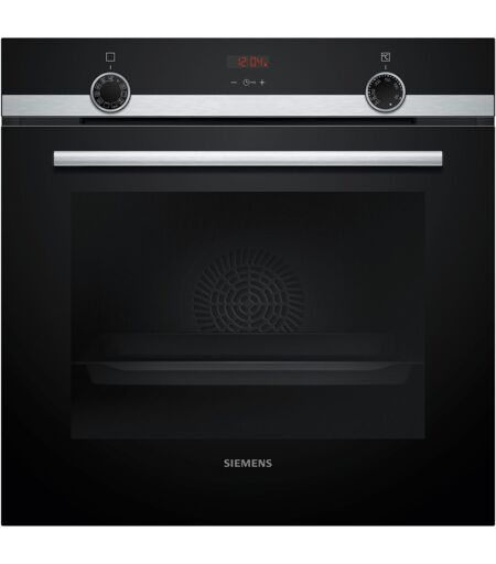 Siemens - Four iQ300 Noir HB554AER3F Découvrez le four Siemens iQ300, un appareil encastrable moderne avec une finition noire élégante. Ce four offre des performances de cuisson de haute qualité avec ses multiples modes de cuisson adaptables à toutes vos recettes. Fonctionnalités de Cuisson 7 modes de cuisson : air pulsé 3D, convection naturelle, gril air pulsé, gril grande surface, position pizza, chaleur de sole, hotAir doux Préchauffage rapide pour un gain de temps précieux Design et Conception Écran LED avec affichage rouge pour une lecture facile des informations Poignée en inox pour un maintien élégant et robuste Cavité intérieure en noir diamant pour un nettoyage simplifié Intérieur de porte en plein verre Nous vous recommandons de choisir des produits complémentaires dans la même gamme iQ300 afin d'assurer une combinaison optimale de vos appareils encastrés. Systèmes de Nettoyage Nettoyage EcoClean et HumidClean (nettoyage par hydrolyse) Nettoyage EcoClean sur 4 parois Fonctionnalités Pratiques EasyClock : programmateur électronique avec monobouton central Départ automatique et contrôle optique de la montée en température Éclairage halogène pour une visibilité optimale Ventilateur de refroidissement intégré Sécurité et Confort Porte à 3 vitres pour une faible température extérieure Sécurité enfants intégrée Supports d'enfournement et système d'extraction avec 5 niveaux de rack Rails télescopiques à 1 niveau avec arrêt automatique Accessoires Inclus Grille Lèchefrite Données Techniques Volume : 71 litres Réglage de température : de 50°C à 275°C Câble de raccordement : 120 cm de longueur Puissance totale de raccordement : 3,6 kW Tension nominale : 220 - 240 V Dimensions d'encastrement (HxLxP) : 560 mm - 568 mm x 585 mm - 595 mm x 550 mm Dimensions appareil (HxLxP) : 595 x 594 x 548 mm ...