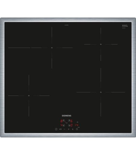 Siemens iQ300 EH645BFB6E plaque Noir, Acier inoxydable Intégré 60 cm Plaque avec zone à induction 4 zone(s)