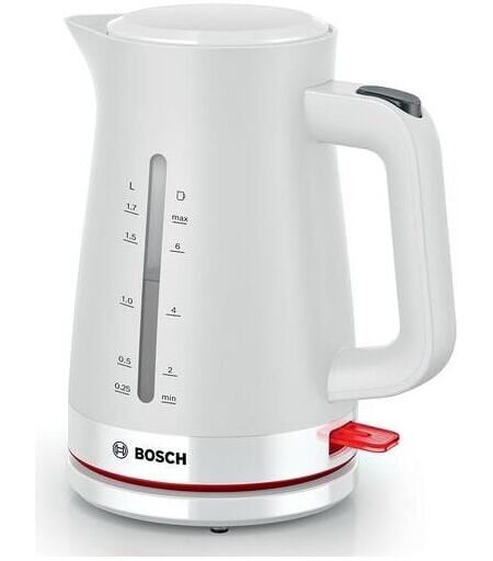 Bouilloire BOSCH - TWK3M121 Gamme : MyMoment Sans fil : Oui Puissance (W) : 2400 Capacité Maximum en Litres : 1.7 Couleur : Blanc Température variable : Non ...