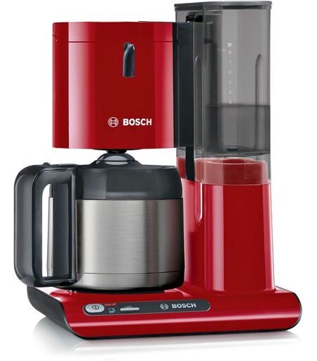 Bosch TKA8A054. Type de produit: Machine à café filtre, Type de cafetière: Semi-automatique, Capacité du réservoir d'eau: 1,1 L, Type d'entrée à café: Café moulu, Réservoir de café: Carafe, Capacité en tasses: 8 tasses. Puissance: 1100 W. Couleur du produit: Rouge ...