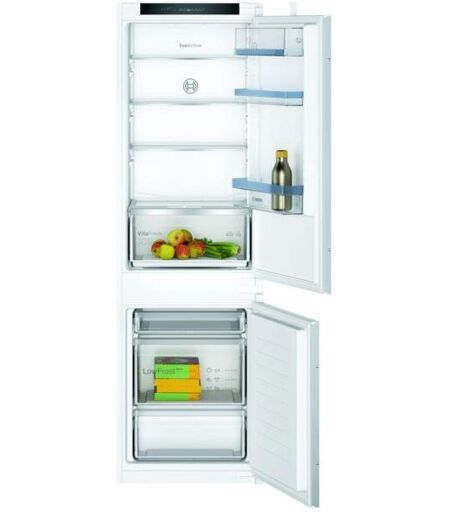 Description générale Le réfrigérateur combiné BOSCH KIV86VSE0 est conçu pour optimiser la conservation de vos aliments grâce à des technologies avancées. Avec une capacité totale de 267 litres, dont 183 litres pour le réfrigérateur et 84 litres pour le congélateur, il est idéal pour les familles. Son compartiment VitaFresh permet de garder les fruits et légumes frais plus longtemps, tandis que la technologie LowFrost réduit la formation de givre, minimisant ainsi les besoins de dégivrage. Spécifications techniques Classe énergétique : E Consommation annuelle : 229 kWh Niveau sonore : 35 dB Dimensions (H x L x P) : 177.2 x 54.1 x 54.8 cm Poids : 51.27 kg Type de froid : Statique Capacité de congélation : 4.2 kg/24h Compatibilité et accessoires Porte réversible pour une intégration facile dans votre cuisine Bac à glaçons inclus Compartiment VitaFresh avec contrôle de l'humidité Installation Ce réfrigérateur est conçu pour s'intégrer facilement dans un espace de cuisine avec des ...