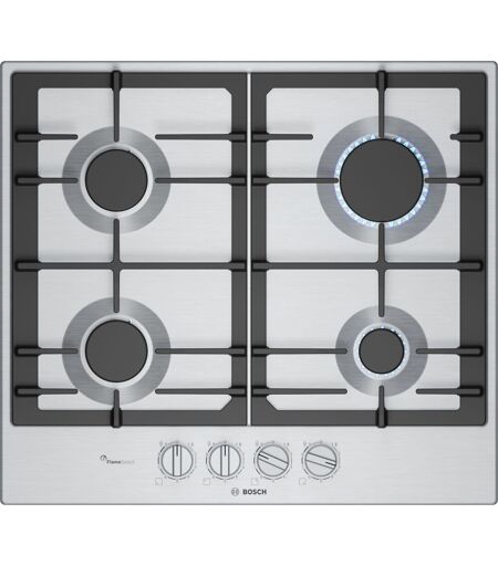 La table de cuisson a gaz BOSCH Série 6 PCP6A5I90 de 60 cm est équipée de 4 foyers avec FlameSelect pour un contrôle précis de la flamme. Avec ses dimensions de 582 mm x 520 mm, elle s'integre parfaitement dans toutes les cuisines modernes. ...