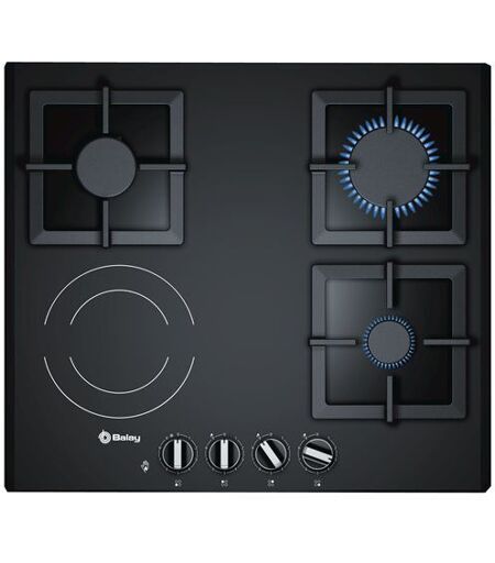 Balay 3ETG667HB - Table de cuisson vitrocéramique et gaz - 4 plaques de cuisson - Niche - largeur : 56 cm - profondeur : 49 cm - noir - avec bord à facettes - noir