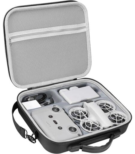 Étui de transport pour DJI Neo : Cette mallette de rangement est spécialement conçue pour les drones DJI Neo avec radiocommande DJI RC-N3, avec hub de charge bidirectionnel et autres accessoires.Protection intégrale : Fabriquée en matériau rigide et moulé avec précision, cette mallette offre une excellente protection pour le drone DJI Neo et ses accessoires contre les dommages et les rayures lors du transport.Design ergonomique : Chaque espace est conçu pour les accessoires du DJI Neo. Cet étui peut stocker un drone DJI Neo, une radiocommande intelligente DJI RC-N3, une batterie de vol intelligente , des câbles, des sticks de contrôle de rechange et d'autres accessoires.Facile à transporter : Se glisse facilement dans un sac à dos ou un sac de voyage. Livré avec poignée antidérapante et une bandoulière pour un placement et une récupération rapides. Vous pouvez l'emmener partout.Contenu : 1 étui de transport FPVtosky pour drone Neo. le drone et tous les accessoires ne sont pas inclus dans le colis. ...
