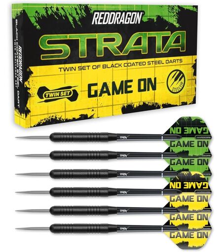 Jeu de fléchettes Strata Game on-Fléchettes à Pointe en Acier Noir de 20 grammes avec Vols et tiges (tiges)
