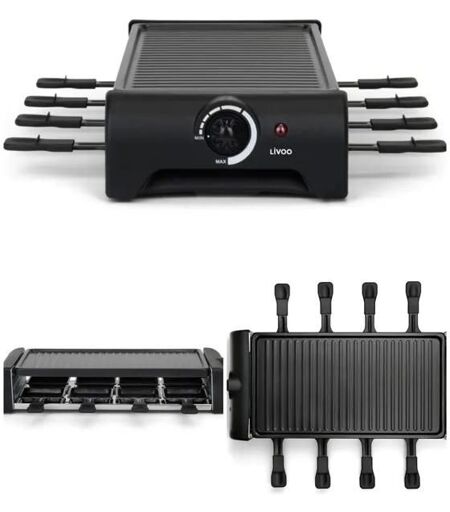 Livoo Appareil Raclette-Grill-Plancha 1300W 8 PERSONNES 8 poêlons + 8 raclettes HQ