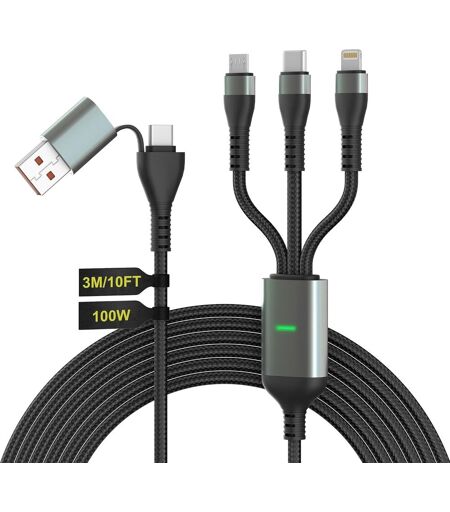 Wqd-100w Câble Multi Chargeur Usb A/C, 3 En 1 3m Universelles Câble, Pd3.0 6a Cable Multi Embout Lightning/Type C/Micro Usb Pour Iphone 16,16 Pro,16 Pro Max,Iphone15-6 Série,Mabook,Galaxy,Huawei,Tabl