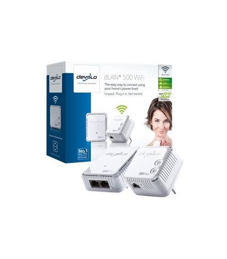 devolo dLAN 500 WiFi - Starter Kit - kit d'adaptation pour courant porteur HomePlug AV (HPAV) 2,4 Ghz - Branchement mural (pack de 2)