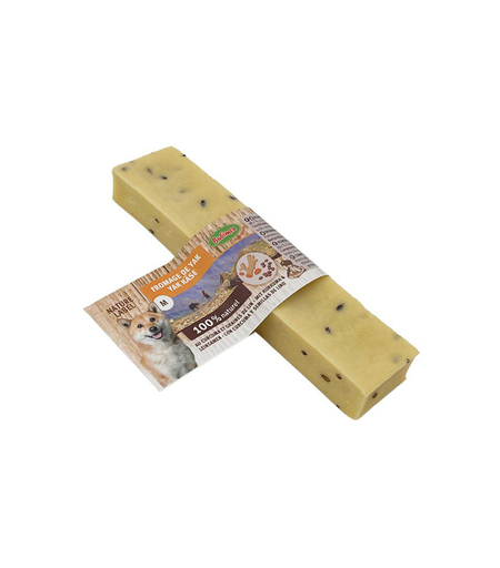 Bubimex Friandise pour chien – Lanière de lait de yak, lin & curcuma – 60 à 80 g Alliez plaisir de mâcher et bienfaits naturels avec cette friandise à mâcher pour chien à base de lait de yak, lin et curcuma . Un format pratique de 60 à 80 g pour accompagner les pauses gourmandes de votre compagnon, tout en prenant soin de sa santé globale. Une recette naturelle et nourrissante Inspirée des traditions himalayennes, cette friandise Bubimex au lait de yak est enrichie en graines de lin et en curcuma , deux ingrédients reconnus pour leurs propriétés bienfaisantes. Le lin est riche en oméga-3, bons pour la peau et le pelage. Le curcuma est réputé pour ses vertus antioxydantes et digestives. Sans colorants ni conservateurs, cette gourmandise naturelle répond aux attentes des propriétaires soucieux de la qualité de l'alimentation de leur chien. Sa texture dense favorise une mastication lente, bénéfique pour l’hygiène dentaire et l’occupation. Une friandise adaptée à de nombreux profils Le format de cette friandise convient à des chiens de petite à moyenne taille , comme les Jack Russell, Cocker Spaniels, Beagles ou Shiba Inus. Pour un grand chien, elle peut servir de snack léger à savourer entre les repas. Facile à intégrer dans une routine bien-être, cette friandise peut être donnée après une séance d’éducation, pendant une promenade, ou simplement pour faire plaisir à votre compagnon lors d’un moment calme à la maison. Un plaisir à mâcher qui soutient la vitalité Source naturelle de calcium et protéines grâce au lait de yak Oméga-3 du lin pour une peau saine et un pelage brillant Curcuma pour soutenir les fonctions digestives Friandise dense pour une mastication prolongée Convient à la plupart des races de petite et moyenne taille Chez Médor et Compagnie® , nous apprécions particulièrement cette recette simple, naturelle et efficace. Elle reflète notre engagement pour le bien-être des chiens , avec des produits à la fois sains et plaisants. Votre chien mérite des moments de gourmandise de qualité. Faites-lui découvrir cette friandise de yak savoureuse et bienfaisante. Et si vous cherchez à compléter ses pauses plaisir, explorez notre sélection de jouets à mâcher , compléments naturels et accessoires bien-être pour tous les chiens. Retrouvez l’ensemble de la gamme en boutique en ligne ou en magasin près de chez vous. Choisissez dès maintenant cette friandise naturelle au goût irrésistible, pour soutenir la vitalité et la bonne humeur de votre compagnon chaque jour?! ...