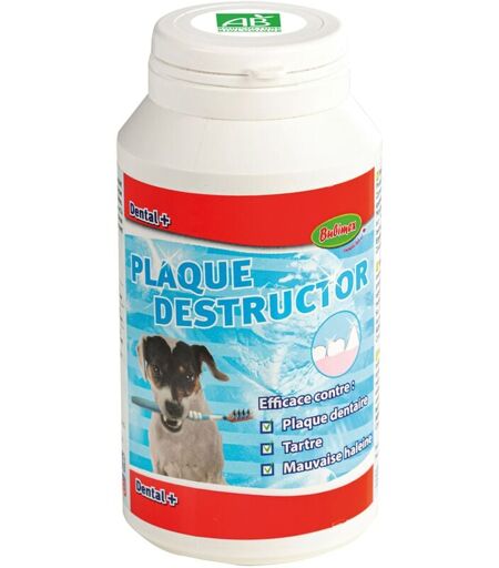 En plus de combattre efficacement la plaque dentaire, le Plaque Destructor détruit le tartre et lutte contre la mauvaise haleine.Ce produit est efficace sur les chiens ou les chats adultes. 2 conditionnements disponibles : 80g et 160g. Plaque Destructor Bubimex pour chien ou chat adulte, Produit efficace contre le tartre et la plaque dentaire, Permet d'éliminer la mauvaise haleine, Très facile d'utilisation, vous pourrez saupoudrer la poudre sur les croquettes de votre animal, Résultat visible dès la 3ème ou 4ème semaine, Cuillère doseuse fournie pour un dosage précis, Produit à base d'algue Fucus Vesiculosus (algue brunes) qui agit efficacement contre le tartre et la plaque dentaire pour prendre soin des dents et des gencives de votre animal, Poudre naturelle et biologique, Idéale en effet préventif, la poudre Plaque Destructor limite la formation de tartre et de la plaque dentaire, 2 conditionnements : 80g (D0511) et 160g (D0512). ...