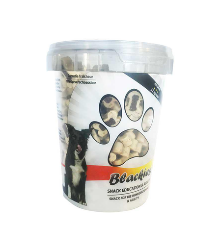 Pourquoi serions-nous les seuls à profiter de friandises pour se régaler ? Votre fidèle compagnon a aussi le droit de se faire plaisir en dégustant les délicieux Snack Blackies de Bubimex. Très utile dans le cadre d’un dressage, d’un entrainement, de l’éducation d’un chiot ou simplement pour un instant gourmandise, en offrant une friandise Snack Blackies vous retenez l’attention de votre animal. Il vous obéira plus facilement ! Proposées en pot de 300 g pour garantir leur fraicheur, les friandises Snack Blackies de Bubimex arborent la forme de petits os. Faibles en matière grasse et riches en protéines, ces friandises sont idéales en complément d'une alimentation équilibrée. Veillez à ce que votre animal ait toujours de l'eau fraîche à disposition. ...