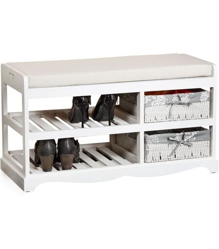 Mucola - Armoire à chaussures Banc Chaussure Tablette Coffre Paniers Banc Coussin en bois Banc Blanc Gris