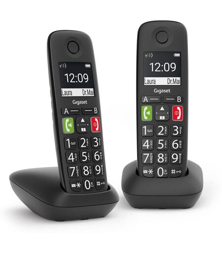Gigaset E290 Duo combiné de téléphone sans-fil analogique Identification de l'appelant Noir