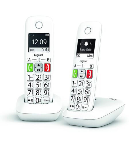Gigaset E290 Duo - Téléphone Fixe sans Fil Blanc, 2 combinés avec Grand écran rétroéclairé, larges Touches, Fonction Blocage D'appels