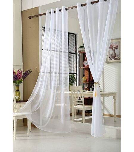 À propos de cet article Fabriqué en 100% Polyester. transparent et souple. Belle décoration pour la fenêtre. Un ruban de même tissu est fourni avec le voilage. 8 oeillets en métal pour suspension. diamètre de 4cm. couleur argent. Hauteur: environ 245cm/225cm/175cm. largeur: environ 140cm. quantité: 2 pièces Lavable jusqu'à 30 degrés. entretien facile. sans chlore. ...