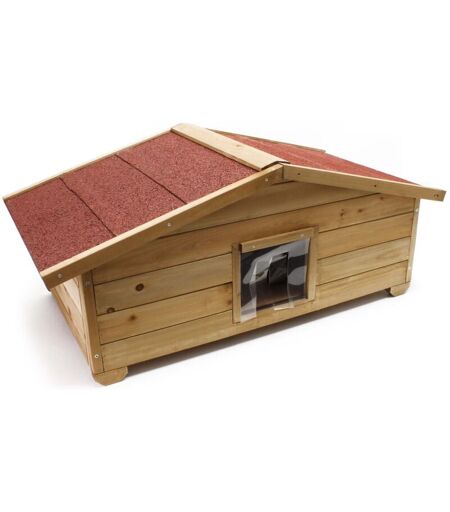 WILTEC Niche de chat Taille l – 990 x 520 x 420 mm – avec Porte, Toit bitumé, Isolation 3 couches – Maison pour chats chatons Outdoor Maisonnette extérieure