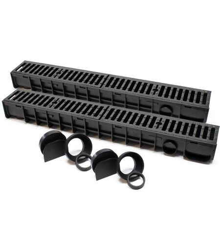 [Caniveau] – Caniveau robuste de Wiltec conçu pour assurer un drainage fiable des eaux pluviales dans les entrées de garage, parkings, cours et passages. Fabriqué en plastique (PP) de haute qualité, il garantit une longévité accrue et une gestion efficace des eaux de surface dans divers espaces extérieurs [Grille de caniveau] – Grille de recouvrement en fonte capable de supporter des charges jusqu’à 25 tonnes. Antidérapante et esthétiquement profilée, elle reste visible après installation tout en offrant sécurité et élégance dans des zones à forte circulation [Drainage parking] – Solution idéale pour le drainage des parkings et espaces résidentiels. Le caniveau, d’une longueur totale de 2x1 m, s’intègre facilement dans les systèmes de gestion des eaux usées et permet une évacuation rapide et uniforme des eaux pluviales [Caniveau terrasse] – Caniveau extérieur parfaitement adapté pour les terrasses, les passages et les cours. Compatible avec les tuyaux KG / DN110 grâce à ses embouts ...