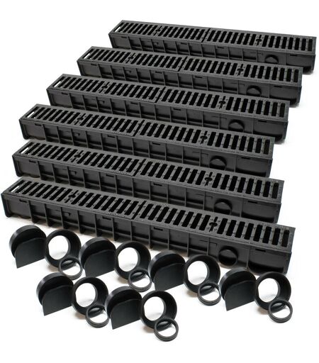 Wiltec - 6x Caniveau – 1000 x 140 x 115 mm – Capacité de charge 12,5 t – avec Grille de recouvrement en fonte – Drainage Eaux usées Rigole Évacuation