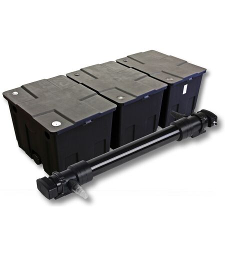 [Clarté de l’eau pour les grands bassins] - Filtre de bassin bio SunSun CBF-350C, 90 000 L, système à 3 chambres, facile à utiliser, pour une eau de bassin cristalline et des habitants en bonne santé. [Réduction de germes efficace] - Clarificateur de bassin UV élimine bactéries, germes pathogènes et algues flottantes, assure une eau claire et favorise la santé des poissons et des plantes. Ce kit de filtration de bassins assemblé tout spécialement pour les grands et moyens bassins jusqu'à 90000l vous offre les accessoires pour votre bassin. Malgré son type de construction compact, le filtre biologique SunSun CBF-350C garantit une eau propre et claire de facon rapide et fiable. Le système de filtration de bassins est favorisé grâce au stérilisateur (Clarificateur) performant de 72W qui, relié directement au filtre, tire profit du volume de filtration de bassins au maximum. SunSun a installé dans le boîtier des séries CUV-600 tout comme dans la série CUV-300. Avoir installé un passage ...