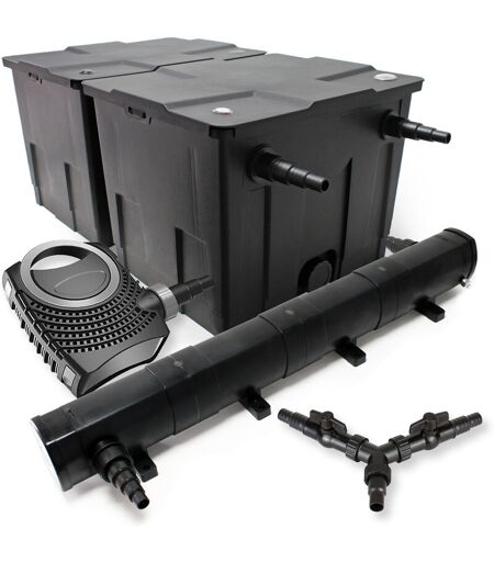 [72W de puissance pour un bassin clair] - SunSun CUV-272 clarifie l’eau des bassins de 60 000 l, élimine les algues et la turbidité, protège les poissons et les plantes pour une eau durablement claire [Bassin de jardin propre] - Filtre bio SunSun CBF-350B, optimisé pour les bassins de 60 000 l, entretien facile, filtration en 2 étapes pour une eau cristalline et des habitants du bassin sains. [SunSun distributeur en Y avec douille à étages] - Gestion flexible de l’eau pour les bassins avec des raccords de 20/25 mm et une régulation précise du débit. [Pompe de bassin SunSun NEO-10000 SuperECO] - Débit de 10000 l/h pour une puissance absorbée de seulement 80 W. Le boîtier de la pompe s’ouvre sans outils, ce qui facilite le nettoyage et l’entretien. Ce kit de bassins de filtration assemblé tout spécialement pour les grands et moyens bassins jusqu'à 60000l vous offre les accessoires pour votre bassin. Malgré son type de construction compact, le filtre biologique SunSun CBF-350B garantit ...