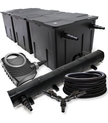 [72W de puissance pour un bassin clair] - SunSun CUV-272 clarifie l’eau des bassins de 60 000 l, élimine les algues et la turbidité, protège les poissons et les plantes pour une eau durablement claire [Clarté de l’eau pour les grands bassins] - Filtre de bassin bio SunSun CBF-350C, 90 000 L, système à 3 chambres, facile à utiliser, pour une eau de bassin cristalline et des habitants en bonne santé. [SunSun distributeur en Y avec douille à étages] - Gestion flexible de l’eau pour les bassins avec des raccords de 20/25 mm et une régulation précise du débit. [Pompe de bassin SunSun CTF-8000 SuperECO] - Débit de 8000 l/h pour une puissance absorbée de seulement 70 W. Le boîtier de la pompe s’ouvre sans outils, ce qui facilite le nettoyage et l’entretien. [Tuyau spiralé résistant aux UV 25 mm] - Tuyau en PVC de 25 m avec spirale de renfort, flexible et robuste. Acheminement d’eau sans problème même pour les projets sophistiqués. Ce kit de filtration de bassins assemblé tout spécialement ...