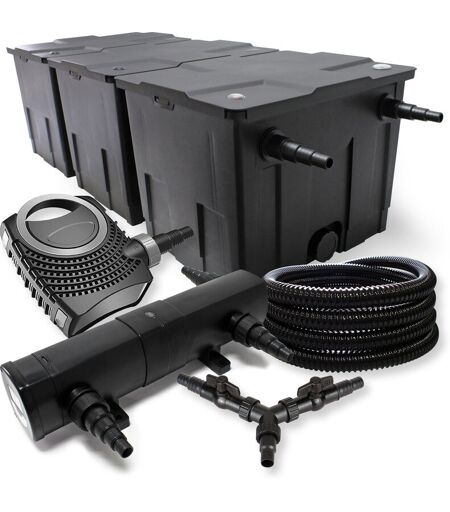 [Une eau limpide avec 36W UV] - SunSun CUV-236 élimine efficacement les algues et la turbidité pour une eau claire comme du cristal. Idéal pour bassins de jardin de 45 000 l max., environnement sain. [Clarté de l’eau pour les grands bassins] - Filtre de bassin bio SunSun CBF-350C, 90 000 L, système à 3 chambres, facile à utiliser, pour une eau de bassin cristalline et des habitants en bonne santé. [SunSun distributeur en Y avec douille à étages] - Gestion flexible de l’eau pour les bassins avec des raccords de 20/25 mm et une régulation précise du débit. [Pompe de bassin SunSun NEO-10000 SuperECO] - Débit de 10000 l/h pour une puissance absorbée de seulement 80 W. Le boîtier de la pompe s’ouvre sans outils, ce qui facilite le nettoyage et l’entretien. [Tuyau spiralé résistant aux UV 25 mm] - Tuyau en PVC de 25 m avec spirale de renfort, flexible et robuste. Acheminement d’eau sans problème même pour les projets sophistiqués. Ce kit de filtration de bassins assemblé tout spécialement ...