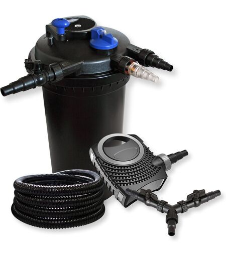 SunSun Kit complet: CPF-15000 Filtre de bassin à pression jusqu’à 30000 L avec 18 Watt UV-C lampe uv, CTF-8000 SuperECO pompe de filtration 8000l/h