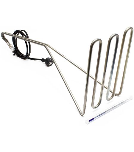 [Acier inoxydable] – Ce thermoplongeur de la marque Wiltec, fabriqué en acier inoxydable, offre une grande robustesse et une excellente résistance à la corrosion. Il convient parfaitement à une utilisation régulière pour la stérilisation thermique des jus et s’intègre dans tout processus artisanal de transformation de fruits [Puissance 3200 W] – Grâce à une puissance de 3200 W et une alimentation standard de 230 V, cet appareil chauffe rapidement le jus entre 85 °C et 90 °C. Il permet ainsi de conserver le liquide directement dans la cuve sans mise en bouteille immédiate, tout en réduisant les efforts liés aux étapes de remplissage [Conservation par échauffement] – Ce thermoplongeur permet de chauffer le jus de manière homogène afin d’en assurer la conservation. Il remplace avantageusement les méthodes classiques de remplissage et s’utilise efficacement après extraction à l’aide d’un presse jus, d’un presse-fruits manuel ou d’un pressoir à fruits manuel [Thermomètre intégré] – ...