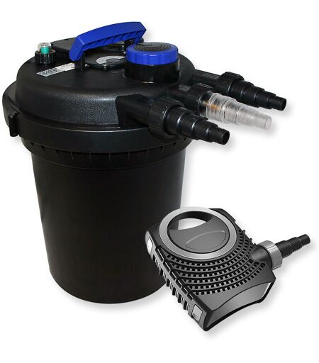 Wiltec - Kit complet: CPF-250 Filtre de bassin à pression jusqu'à 10000 l avec 11W lampe uv, NEO8000 SuperEco pompe de filtration 8000l/h 70W