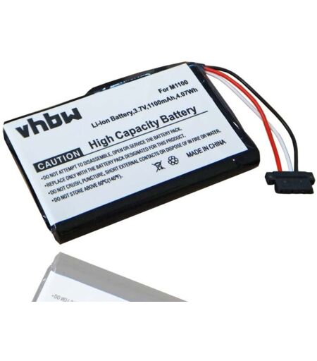 vhbw - the clever way - Batterie de rechange de haute qualité avec une grande autonomie et compatible avec votre système de navigation GPS (vous trouverez ci-dessous tous les modèles correspondants) - La batterie peut être chargée avec le chargeur standard ou un chargeur compatible - Nos batteries répondent à toutes les normes de sécurité actuelles CONTENU DE LIVRAISON : - 1x batterie DONNÉES TECHNIQUES : - Technologie : Li-ion - sans effet mémoire - Capacité : 1100 mAh - Tension : 3,7 V - Énergie nominale : 4,07 Wh COMPATIBLE AVEC Mitac Mio Spirit V505 TV, V735 TV Pour garantir la compatibilité, veuillez vérifier si votre batterie utilisée actuellement est répertoriée. REMPLACEMENT POUR : - 338937010183, M1100 vhbw - Accessoires et pièces de rechange de haute qualité pour prolonger la durée de vie de vos appareils électriques. ...