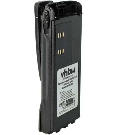 vhbw - the clever way - Batterie de rechange de haute qualité avec une grande autonomie et compatible avec votre radio talkie-walkie (vous trouverez ci-dessous tous les modèles correspondants) - Du fait de cette grande capacité, un autre boîtier de protection est nécessaire - celui-ci est bien entendu inclus dans la livraison - Nos batteries répondent à toutes les normes de sécurité actuelles CONTENU DE LIVRAISON : - 1x batterie avec couvercle de fermeture (couleur : noir) - 1x clip de ceinture DONNÉES TECHNIQUES : - Technologie : NiMH - Capacité : 1500 mAh - Tension : 7,2 V - Énergie nominale : 11,25 Wh - Couleur de la couvercle : noir COMPATIBLE AVEC : - Motorola GP1280 - Motorola GP140 - Motorola GP240 - Motorola GP280 - Motorola GP320 - Motorola GP328 Pour garantir la compatibilité, veuillez vérifier si votre batterie utilisée actuellement est répertoriée. REMPLACEMENT POUR : - Motorola HMNN4151, HMNN4154, HMNN4158, HMNN4159, HNN4001, HNN4003, HNN9008, HNN9008A, HNN9008AR, ...