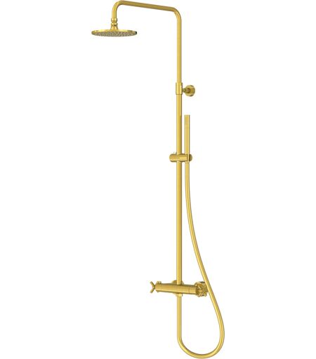 Steinberg Série 250 set de douche 2502721BG avec mitigeur thermostatique apparent, douchette pluie/main, or brossé