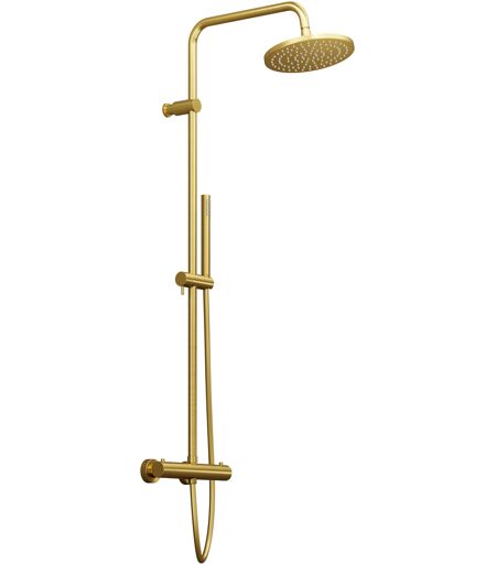 Steinberg Série 340 ensemble de douche 3402721BG avec mitigeur thermostatique, douche à effet pluie, douchette à main, or brossé